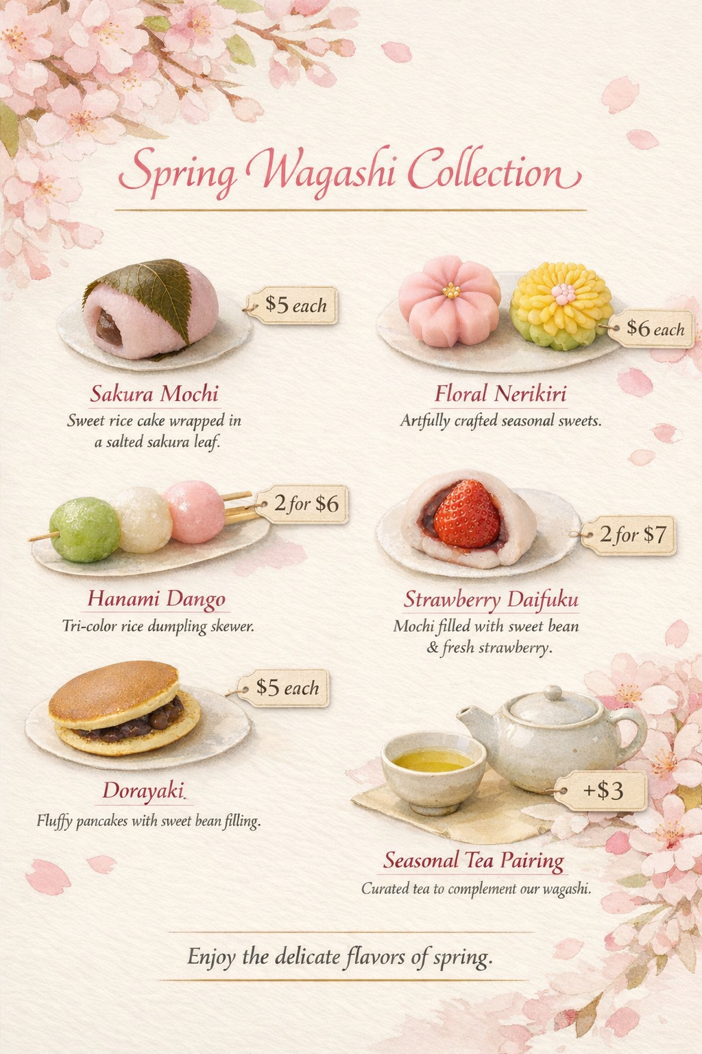 Custom wagashi creations available upon request.